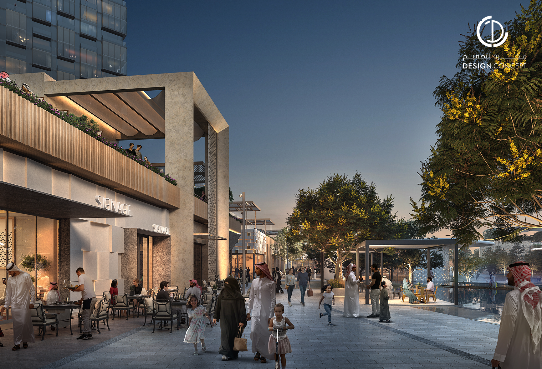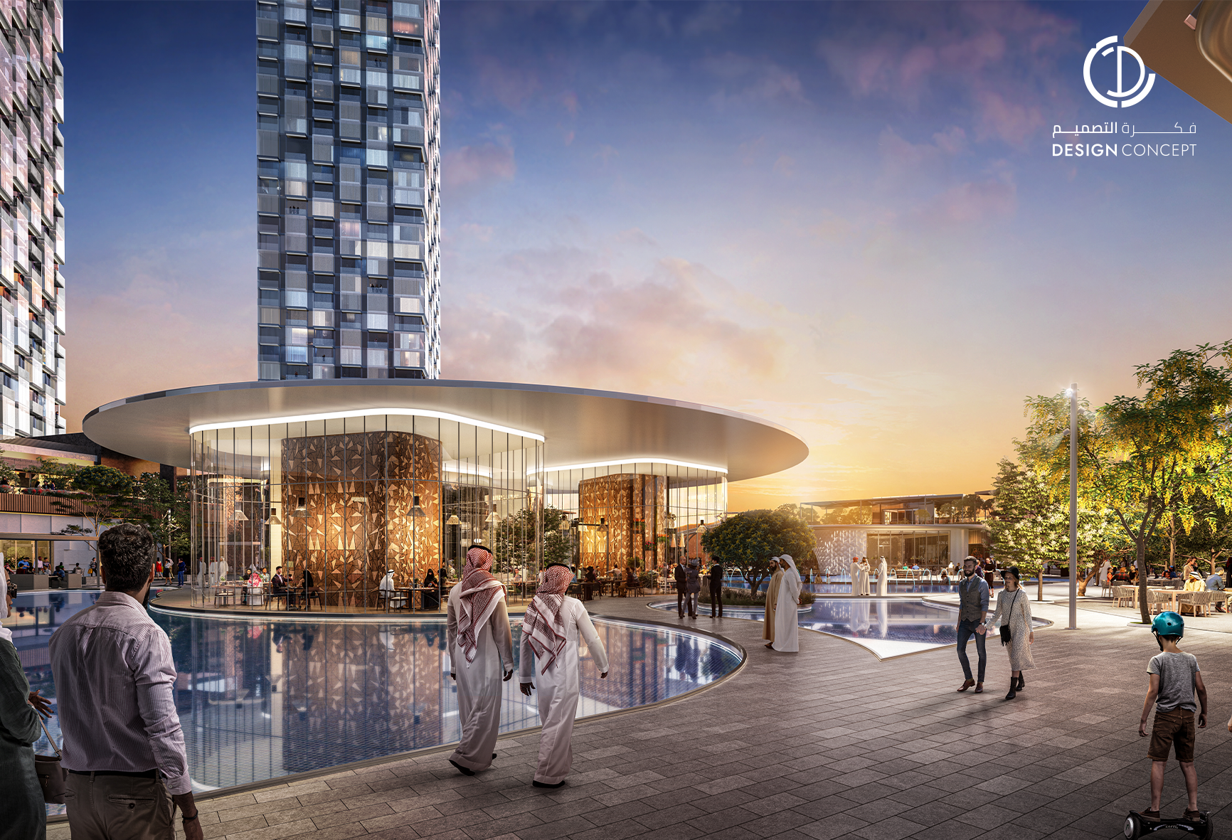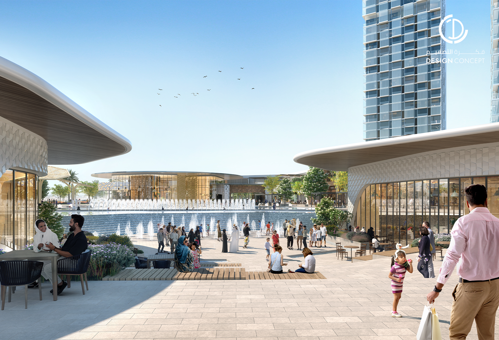 مساحة 45,000 متر مربع، عبارة عن مجمع سكني تجاري مكوّن من 3 أبراج سكنية وأكثر من 50 دور سكني، محلات تجارية وخدمات ترفيهية بتصميم حديث.