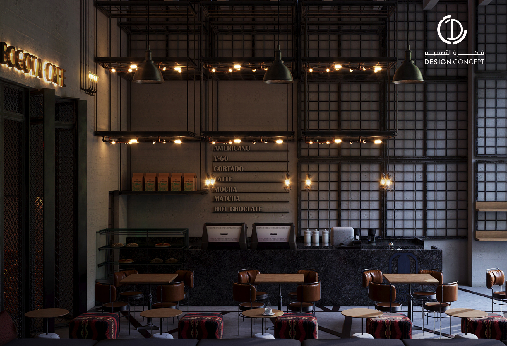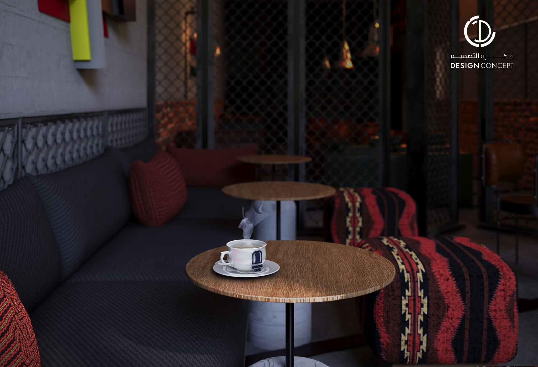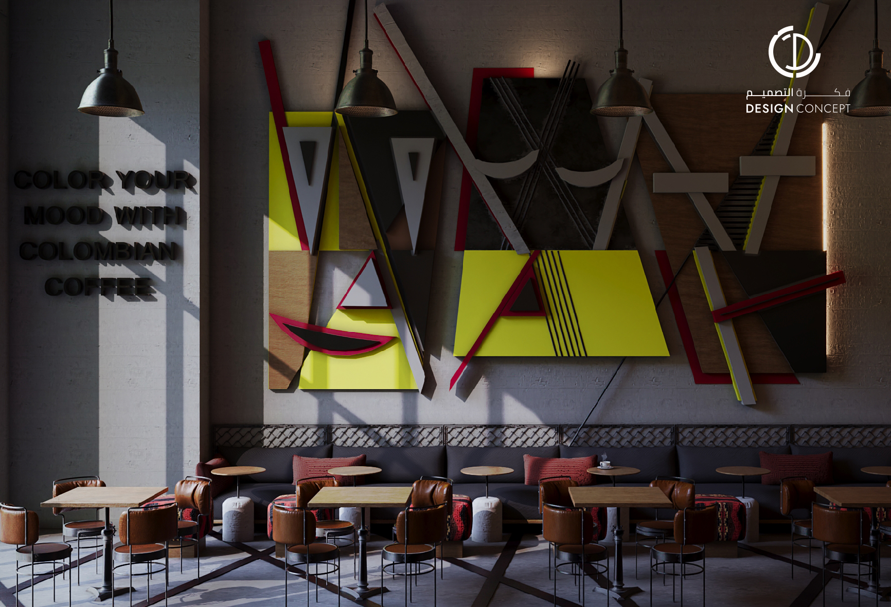 يتكون المشروع من جلسات داخلية وخارجية بنمط كولومبي، ألوان حارة، خطوط حادة وأقنعة كولومبية صُممت لتمثل ثلاث مزاجات لشارب القهوة.