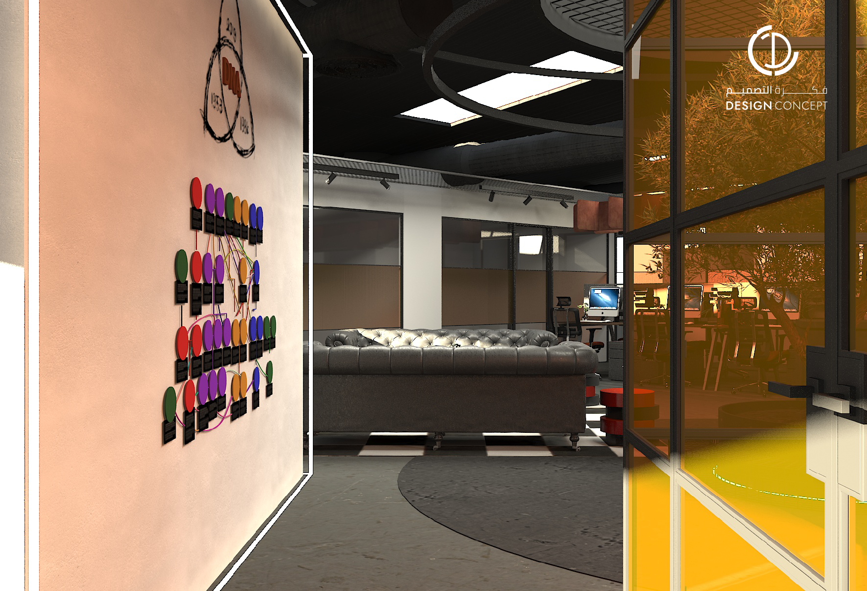 ينبع مفهوم مكتب “DNA” من أن كل ما يراه المستخدم يحتاج إلى وضعه في إطار لخلق نتيجة ذات مغزى، واستلهمنا من هذا المفهوم تصميم يعكسه.