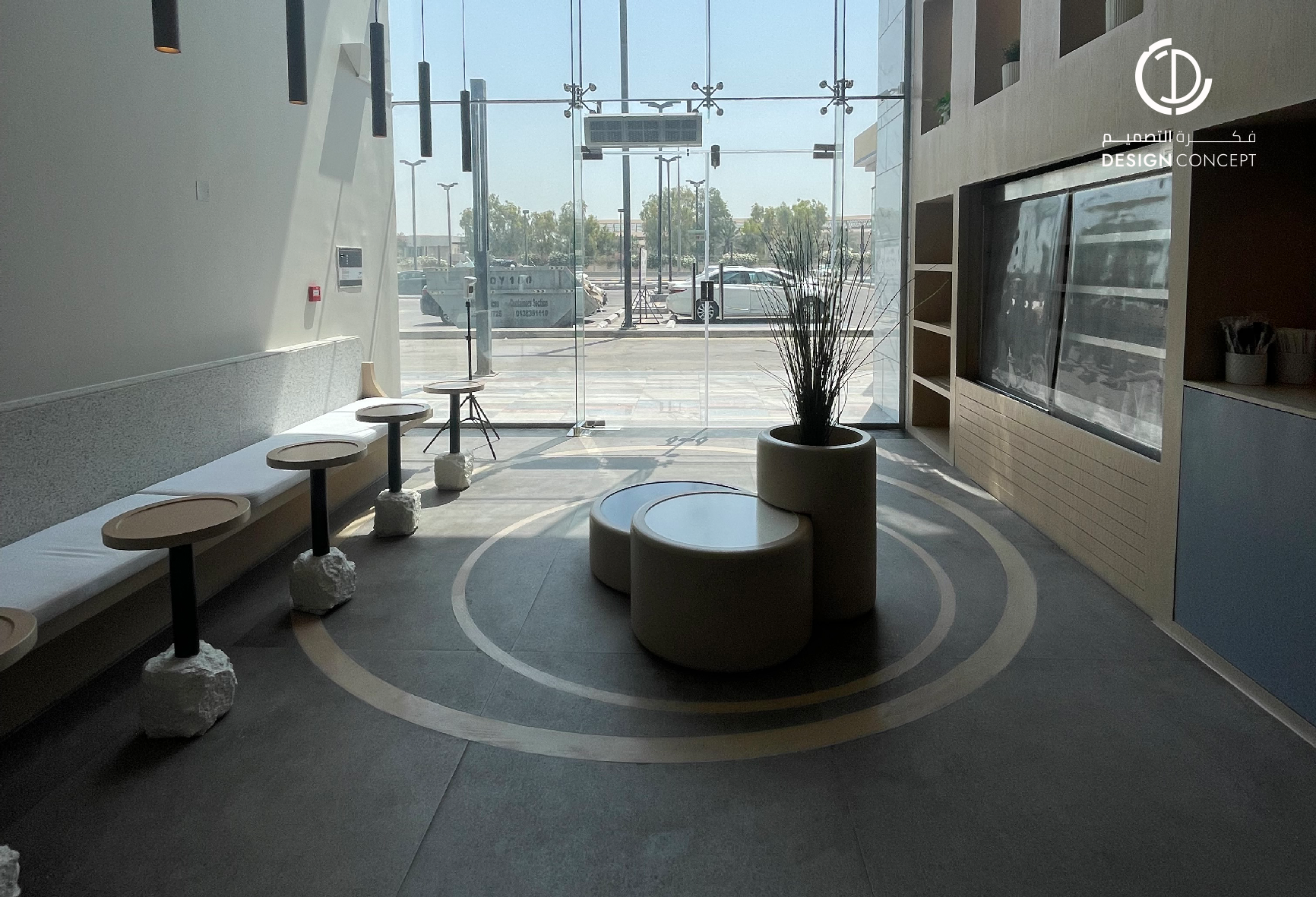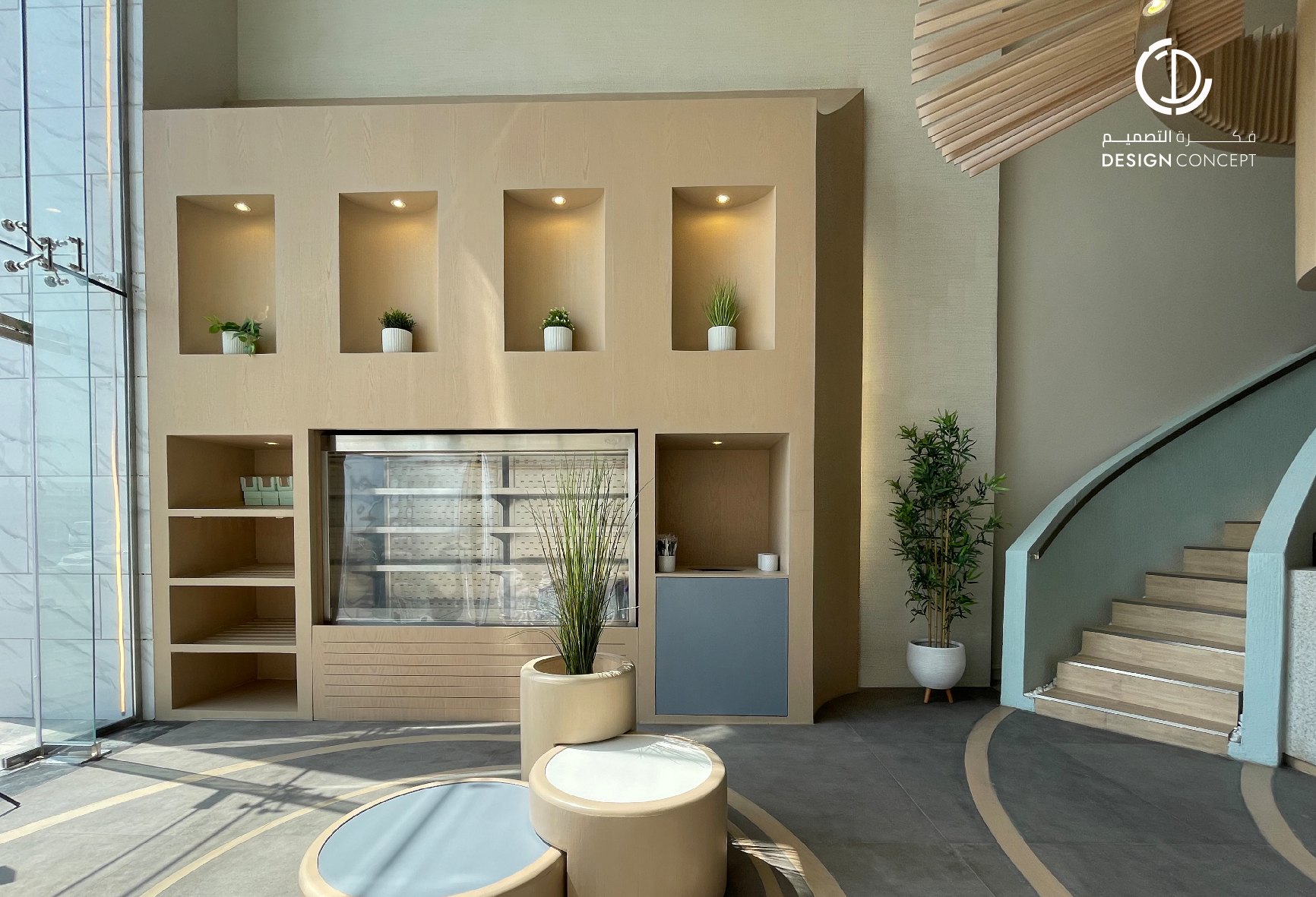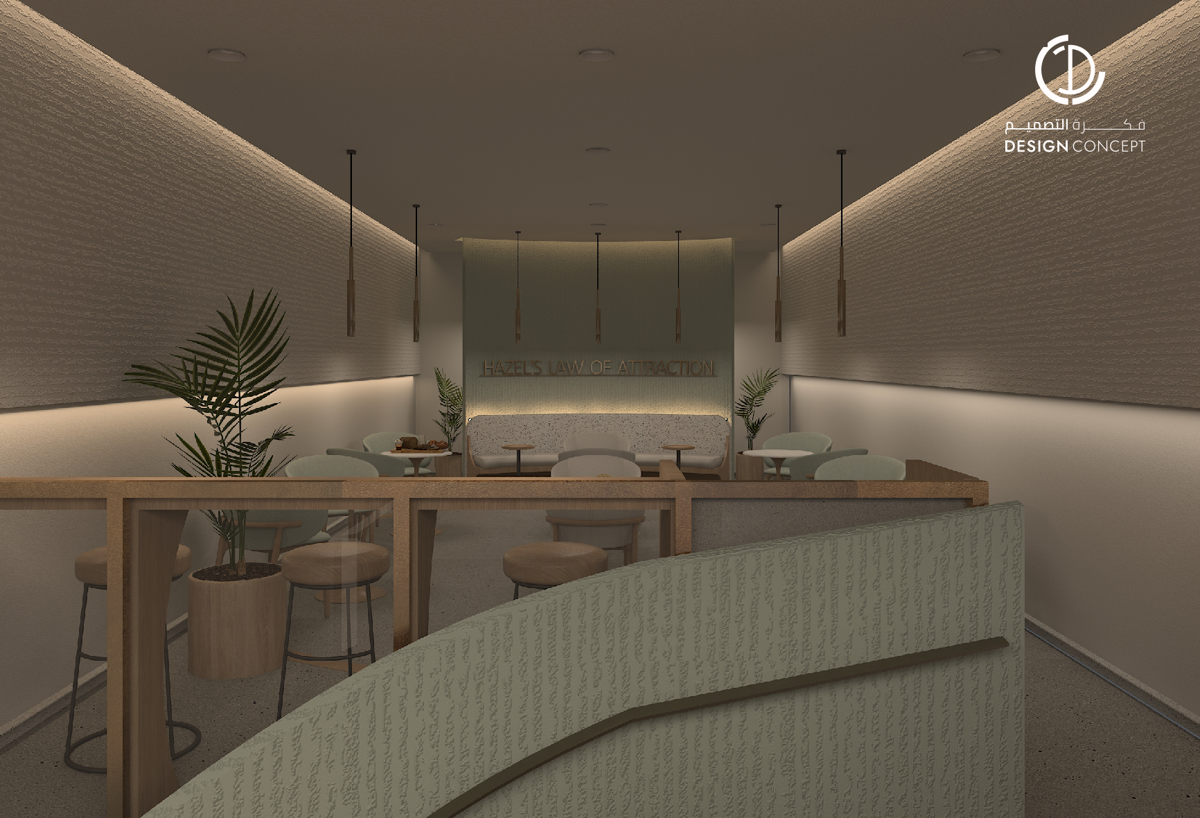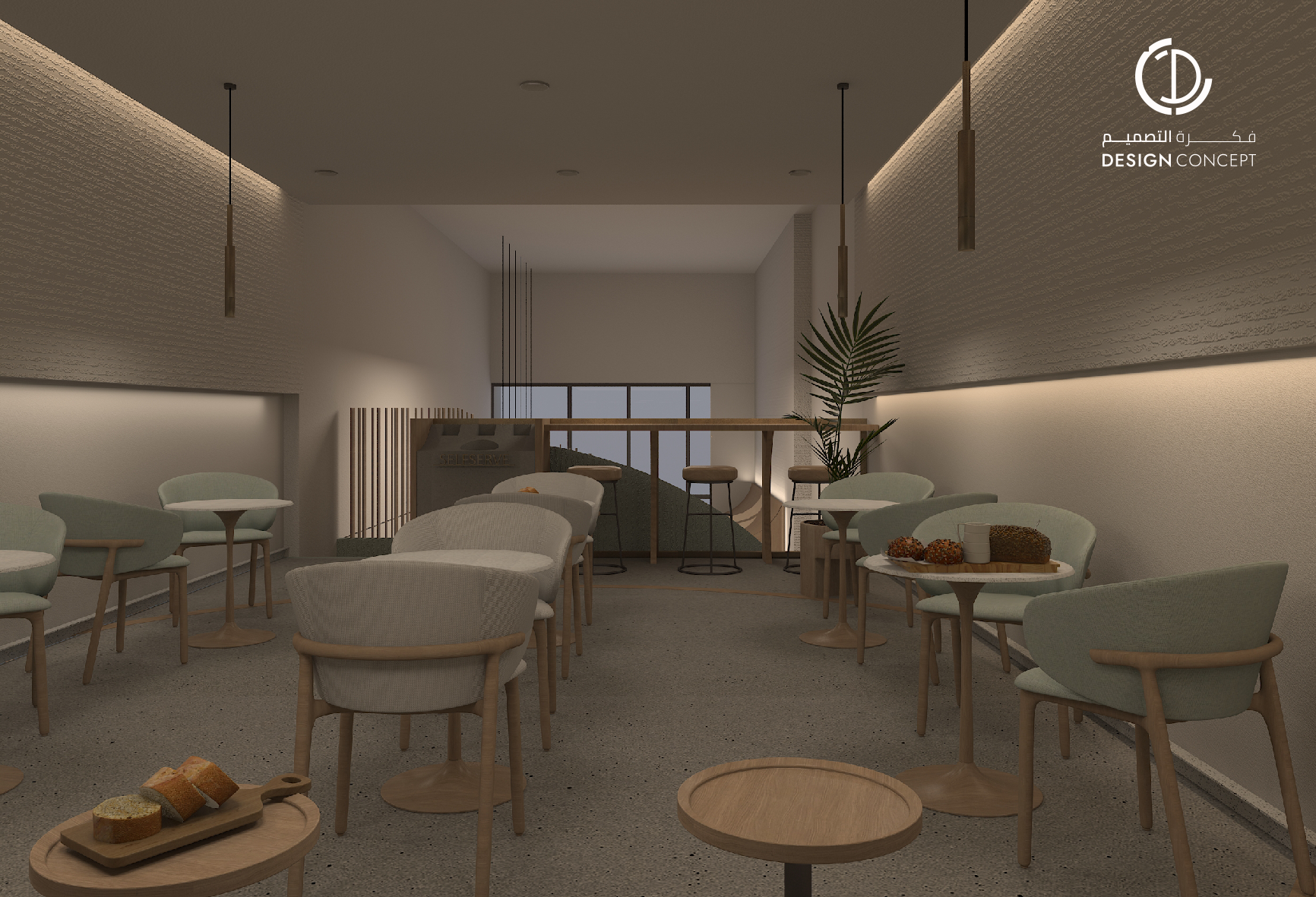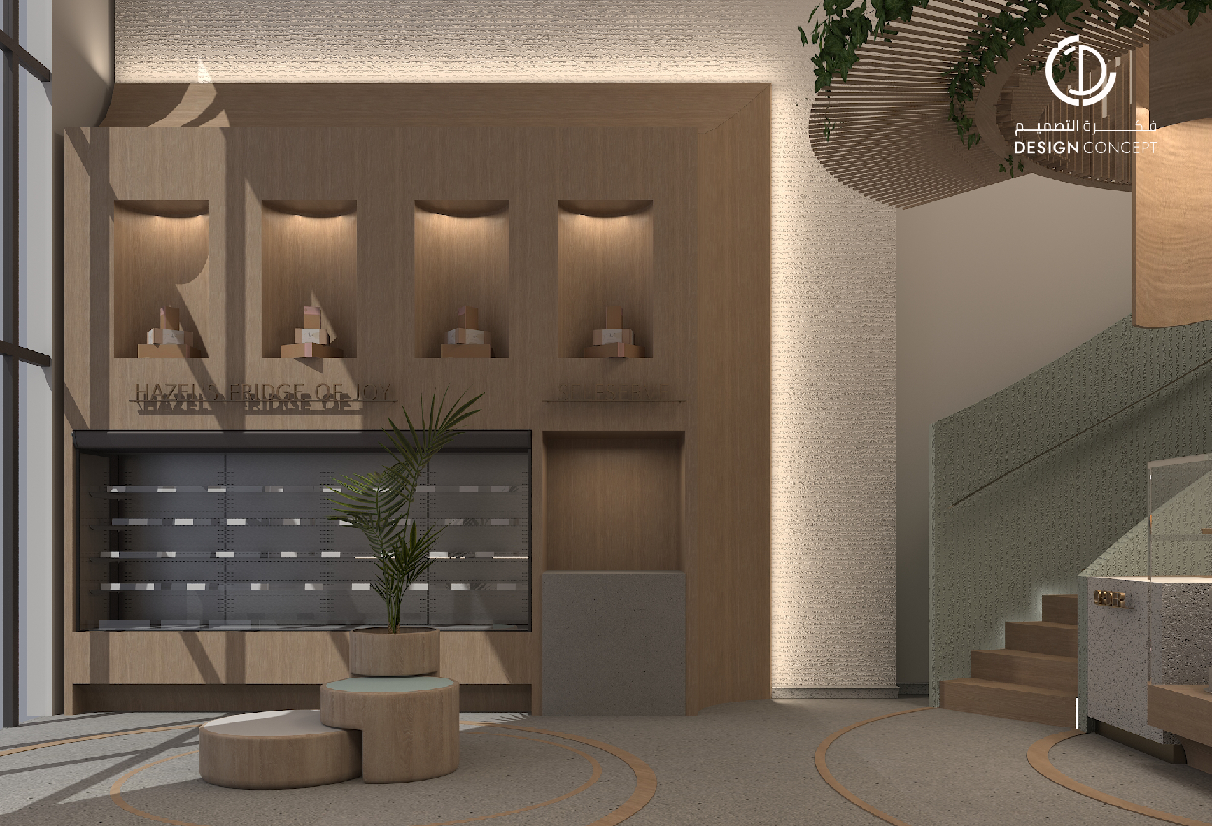 يتكون المشروع من دور أرضي بمساحة 120 متر مربع، صُمم امتثالًا لحبة البندق وما تحتويها من طبقات، كما يتوسط المقهى منطقة تحضير المخبوزات.