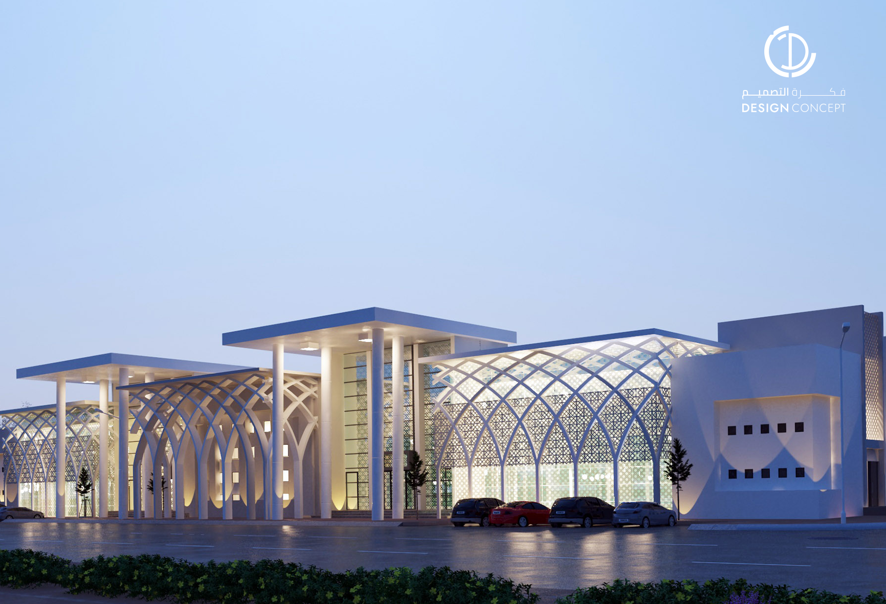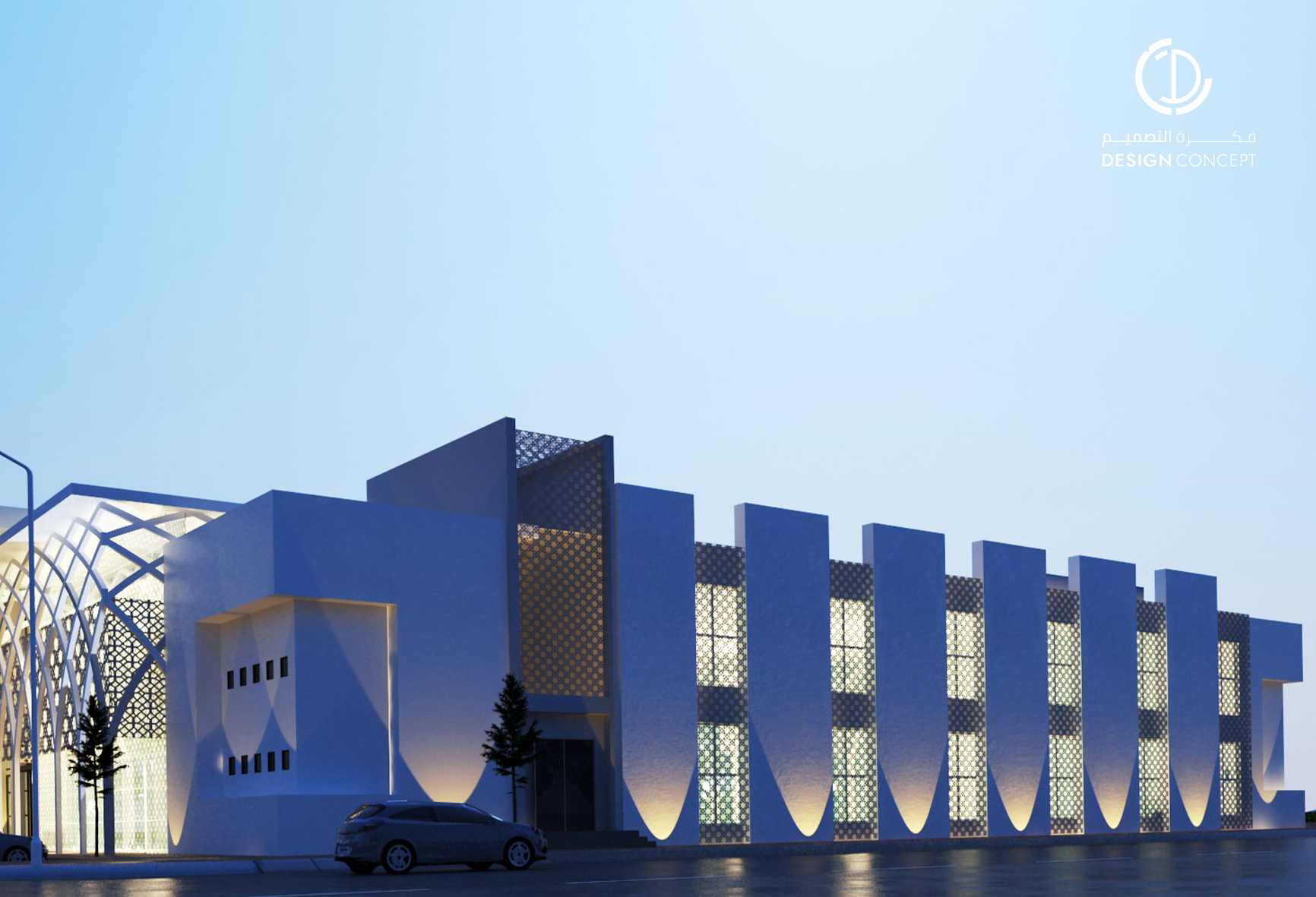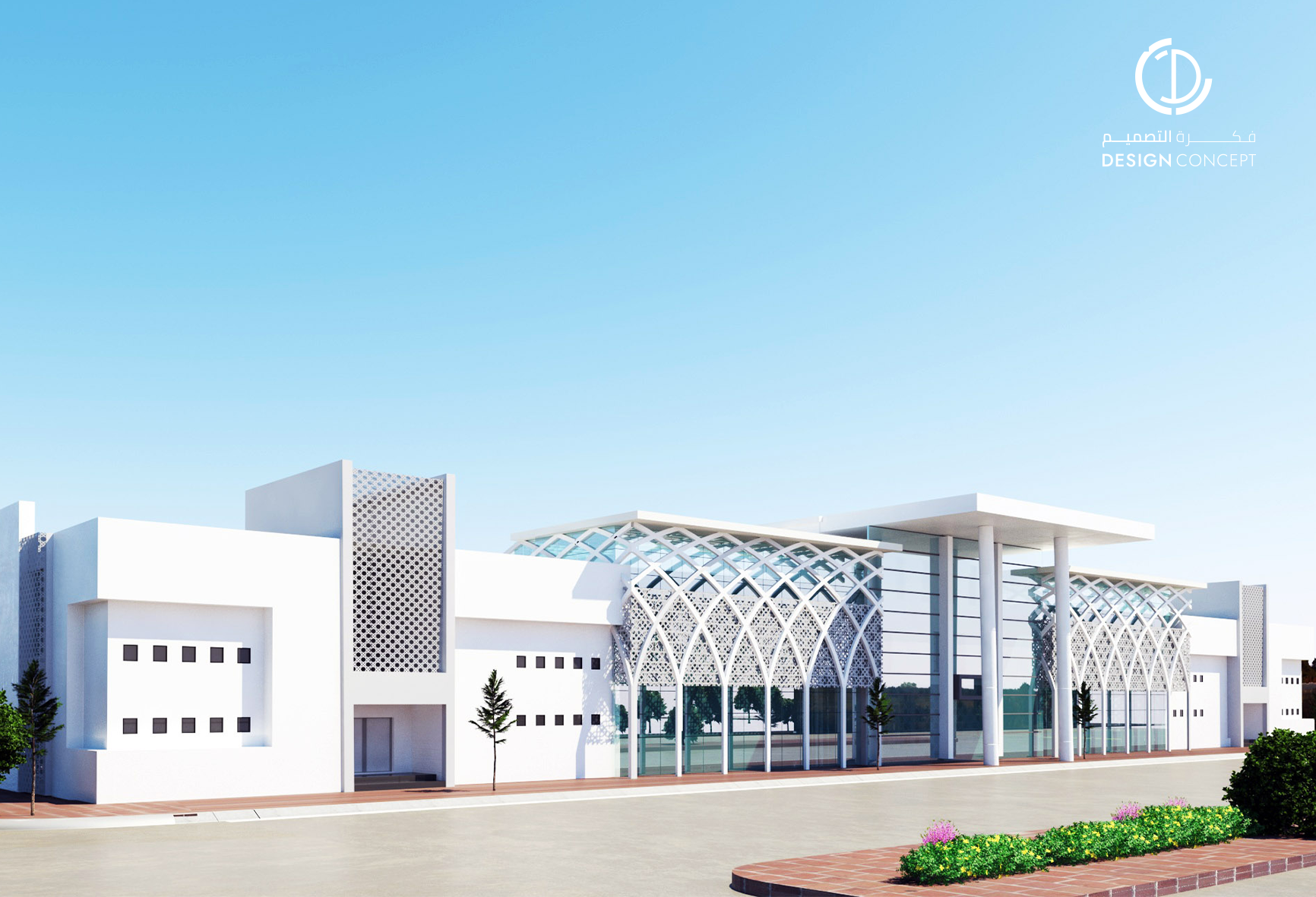 تصميم بطابع إسلامي حديث، تم تطبيقه باستخدام الأقواس والدمج بين الزجاج والسكرين في الواجهة لعمل تظليل وإدخال الإضاءة الطبيعية للمبنى.