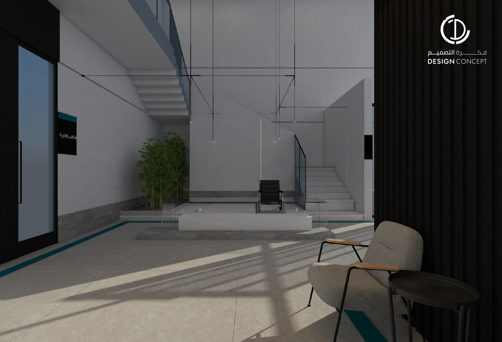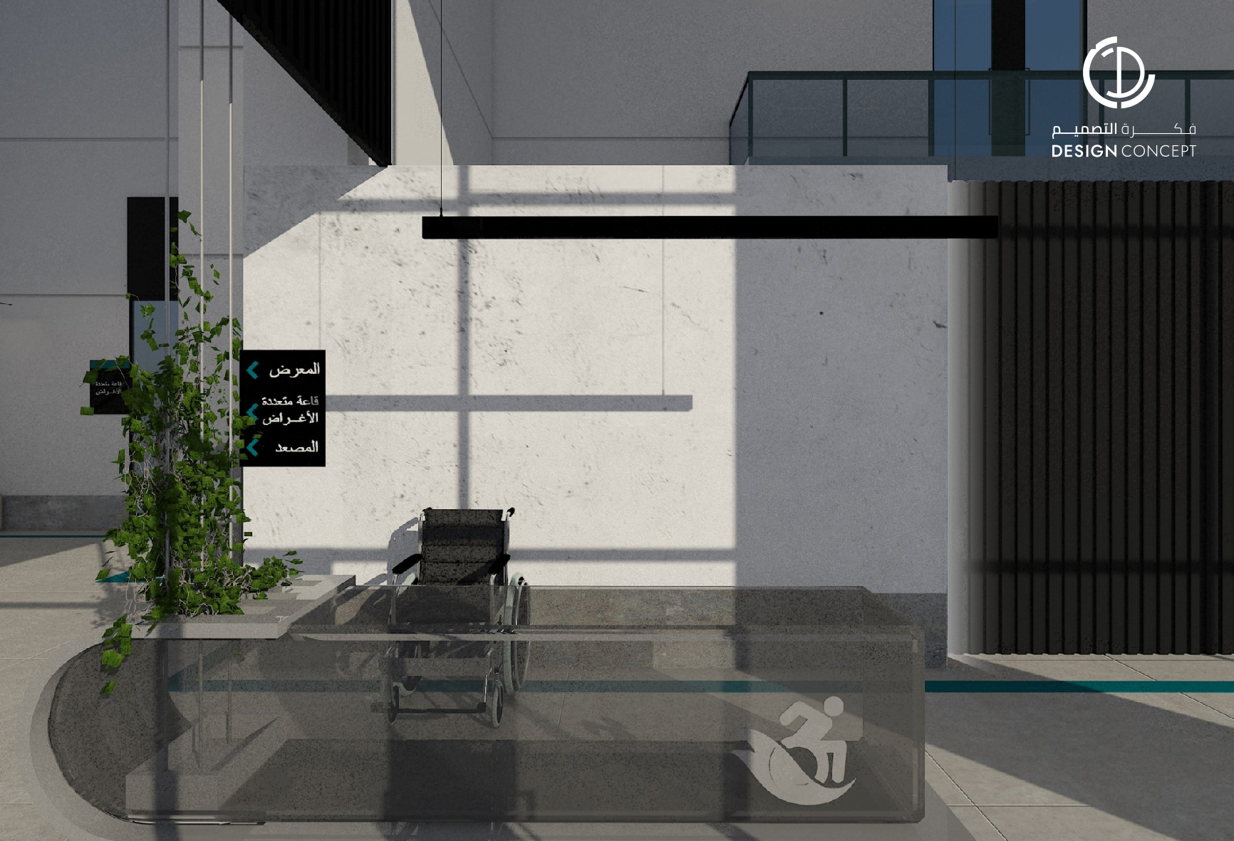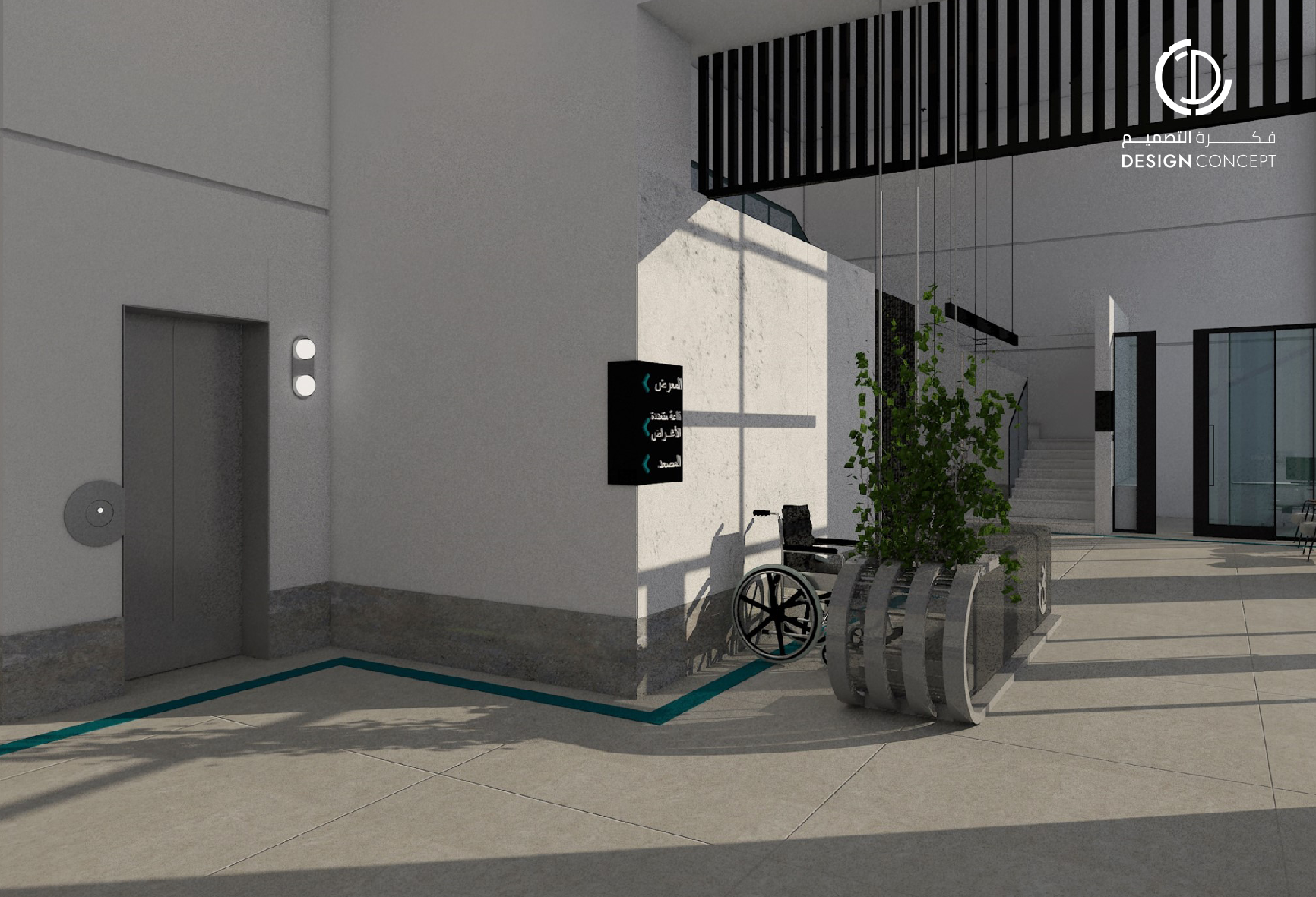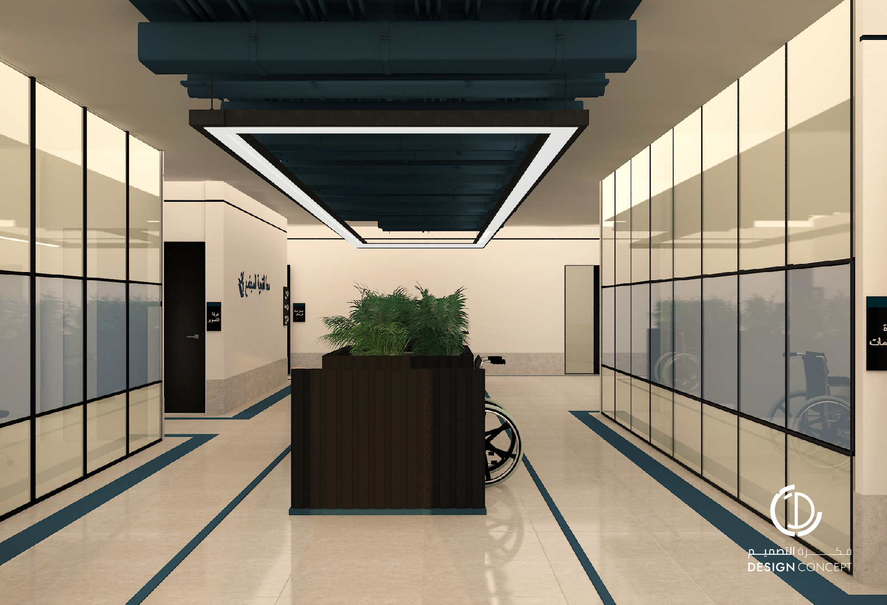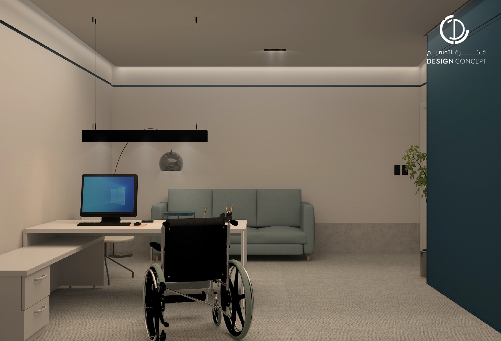 تصميم داخلي للجمعية مع مراعاة دورها في استهداف ذوي الإعاقة الحركية، شملت الفكرة التصميمة مضمون الشفافية والأُحادية، فغلب على التصميم توحيد الألوان مع تقسيم الحيزات لمناطق عامة ومناطق خاصة للموظفين.