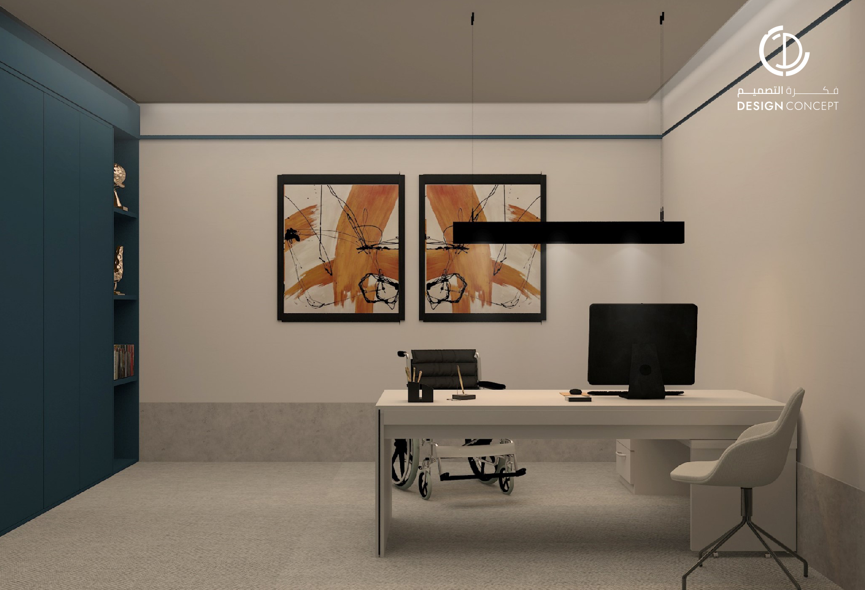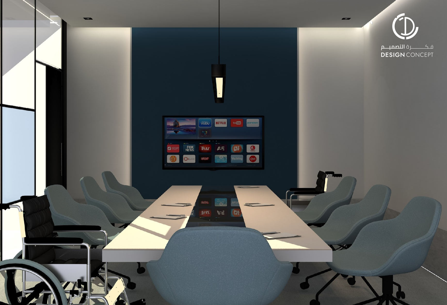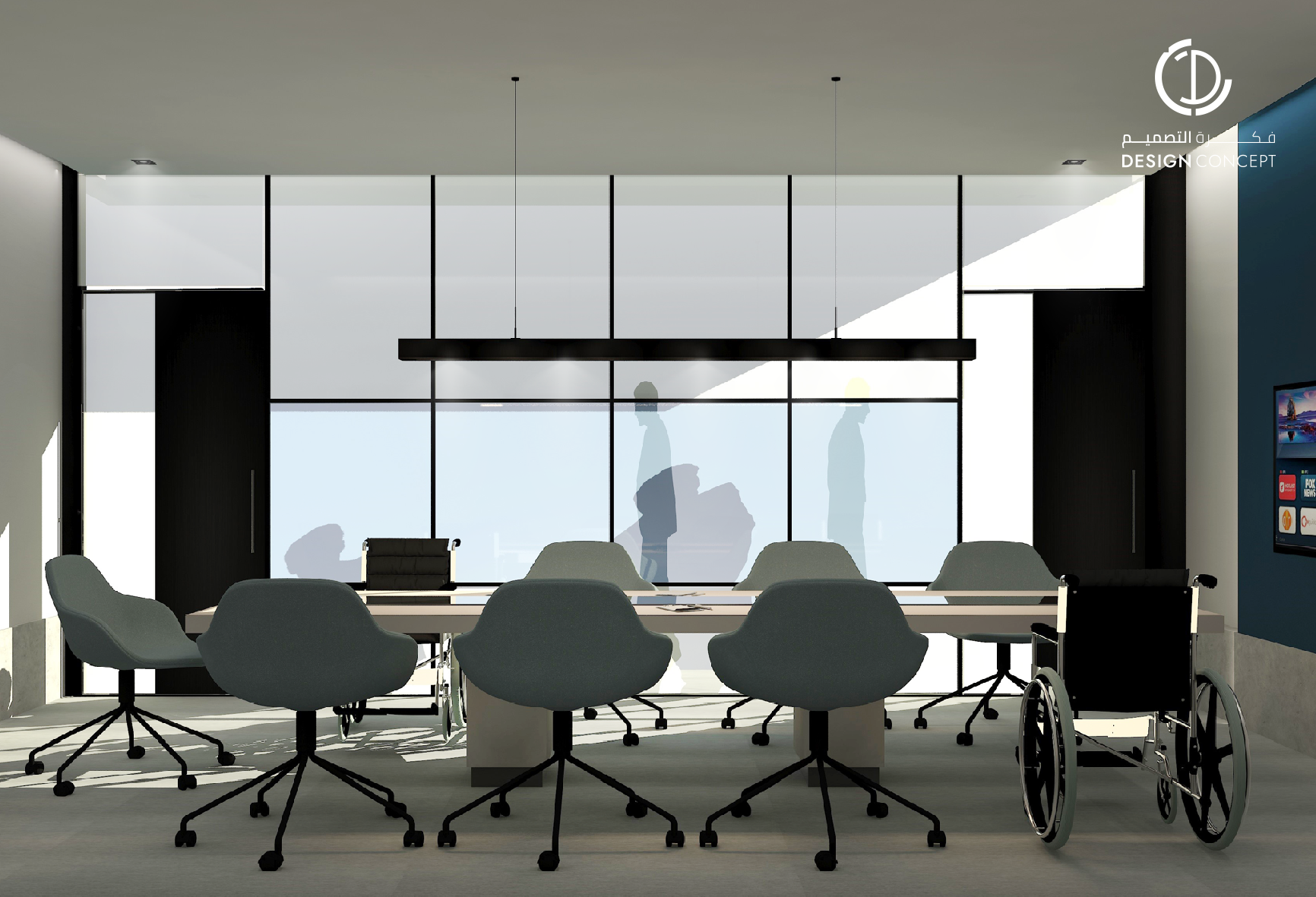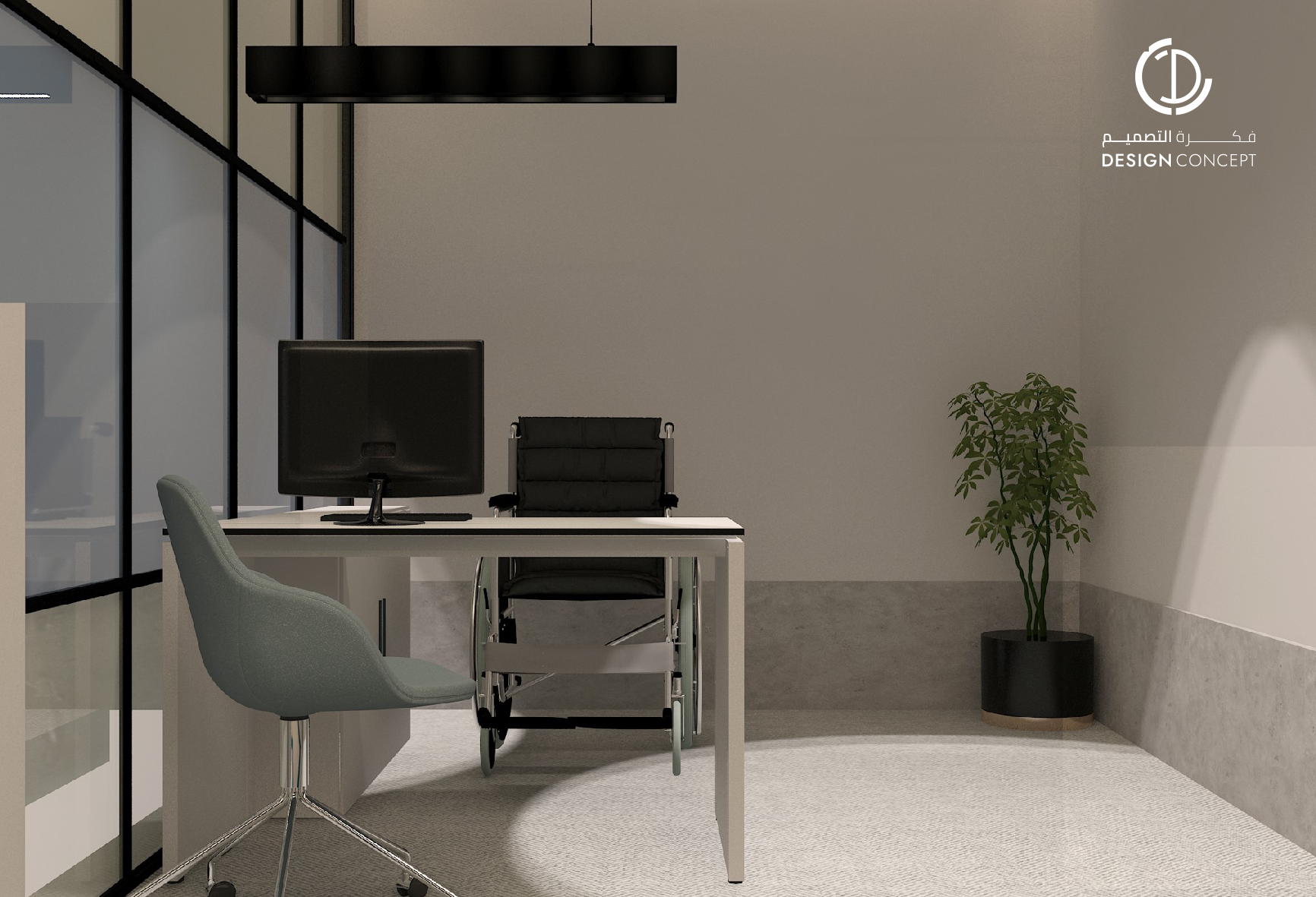 تصميم داخلي للجمعية مع مراعاة دورها في استهداف ذوي الإعاقة الحركية، شملت الفكرة التصميمة مضمون الشفافية والأُحادية، فغلب على التصميم توحيد الألوان مع تقسيم الحيزات لمناطق عامة ومناطق خاصة للموظفين.