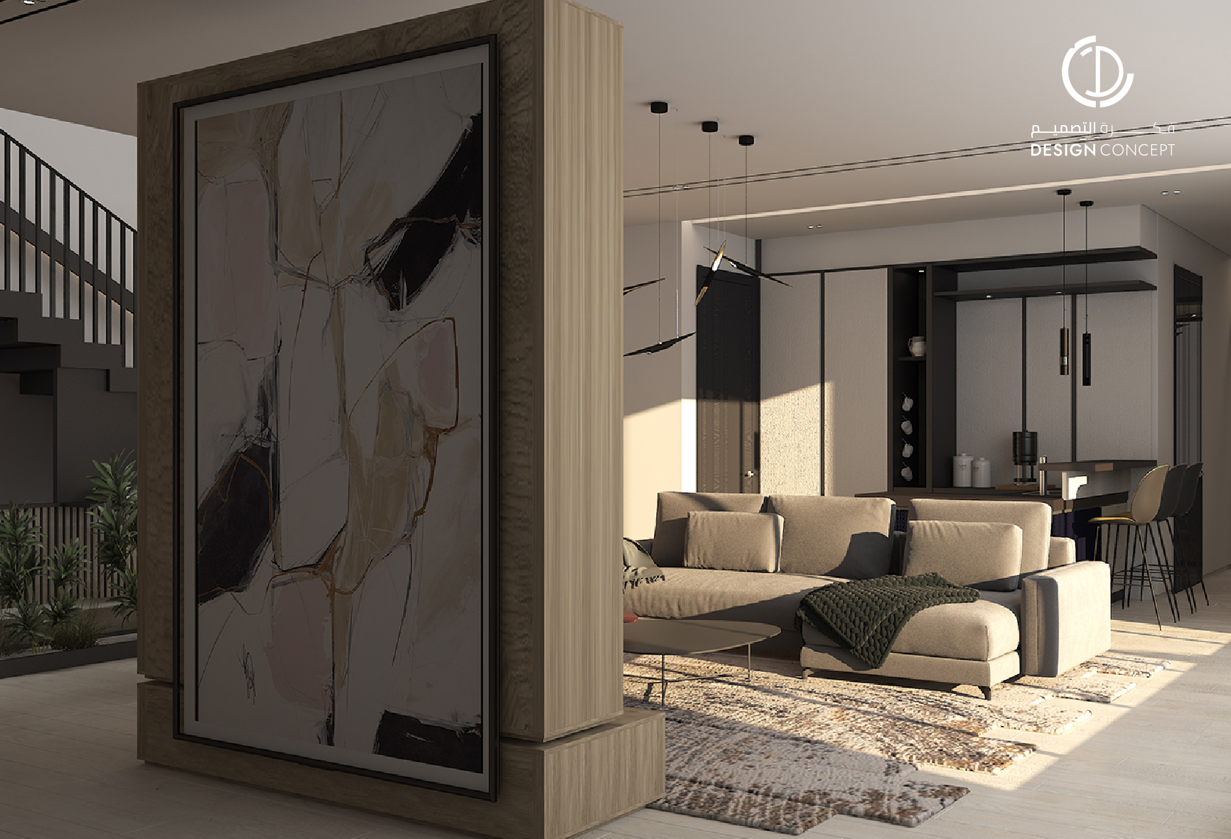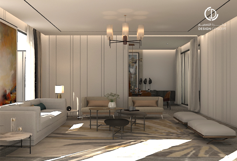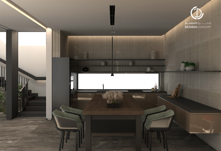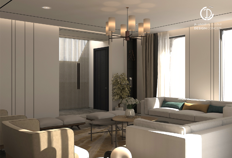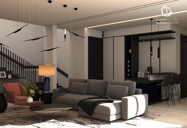 حرصنا في تصميم هذه الڤيلا على عكس شخصية المالك في الفراغ، كما أن توزيع الفراغات حقق لنا مرونة في استخدام الحيزات بمختلف الترتيبات.