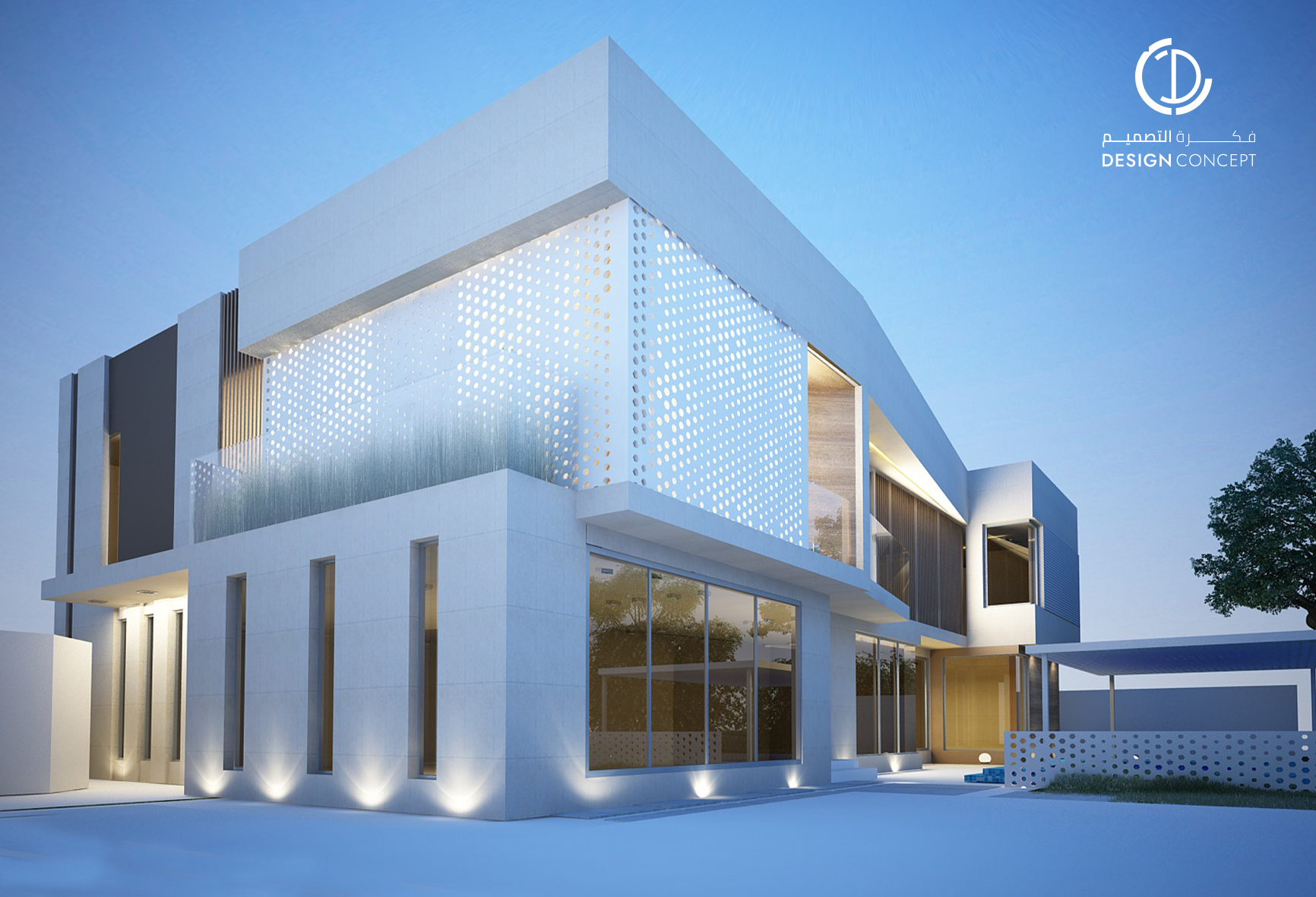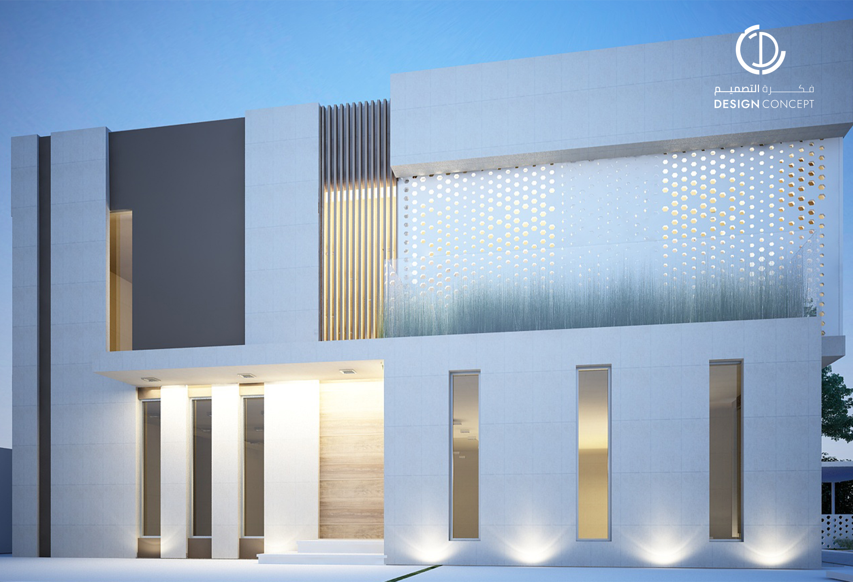ڤيلا خاصة بمساحة 1048 متر مربع، تصميم معاصر للمشربيات بأنماط متكررة قابلة للتحريك تعطي خصوصية وشكل جمالي للواجهات.