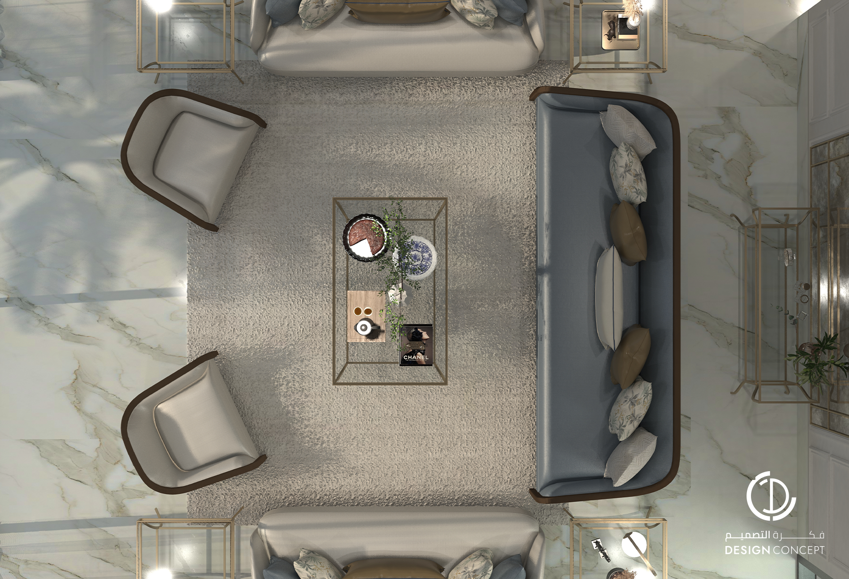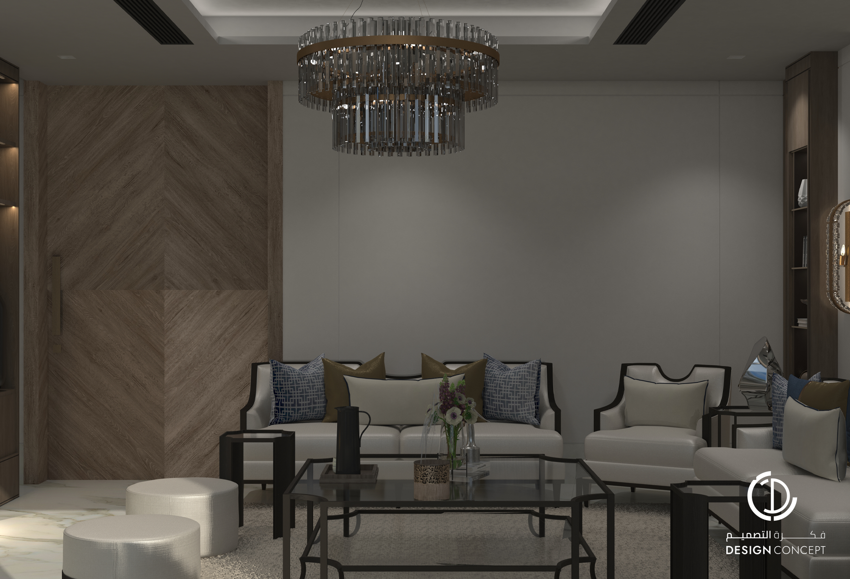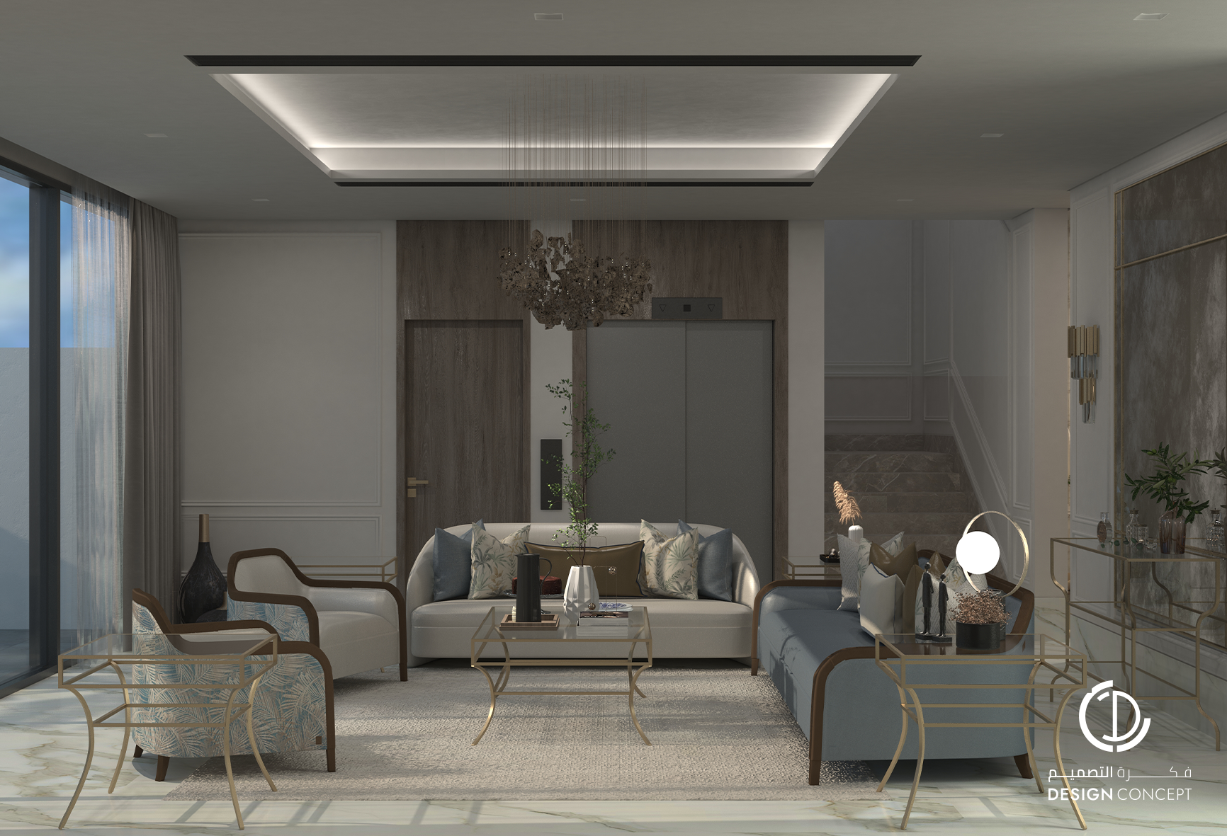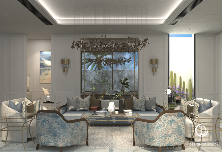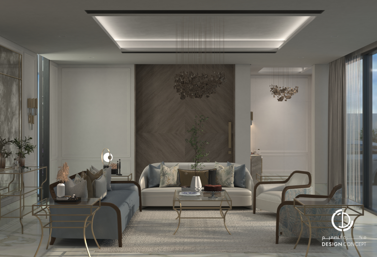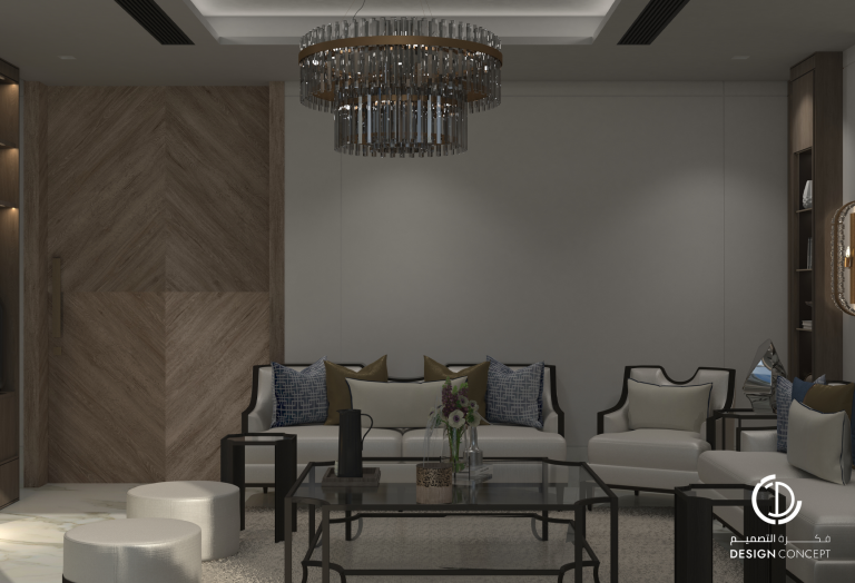 تم تصميم الفيلا على مساحة 130م² بعناية لتوفّر تجربة سكنية تجمع بين الأناقة والراحة. يضم التصميم مجلس بتفاصيل من الرخام والخشب، صالة عائلية دافئة وغرفة نوم رئيسية بلمسات عصرية. تم اعتماد خامات طبيعية وألوان محايدة وإضاءة هادئة في التصميم بشكل عام لخلق توازن بصري يوحي بالاتساع والسكينة.