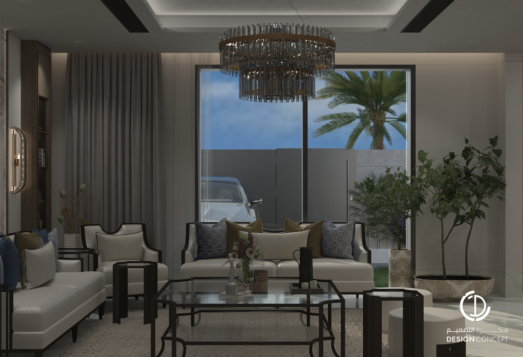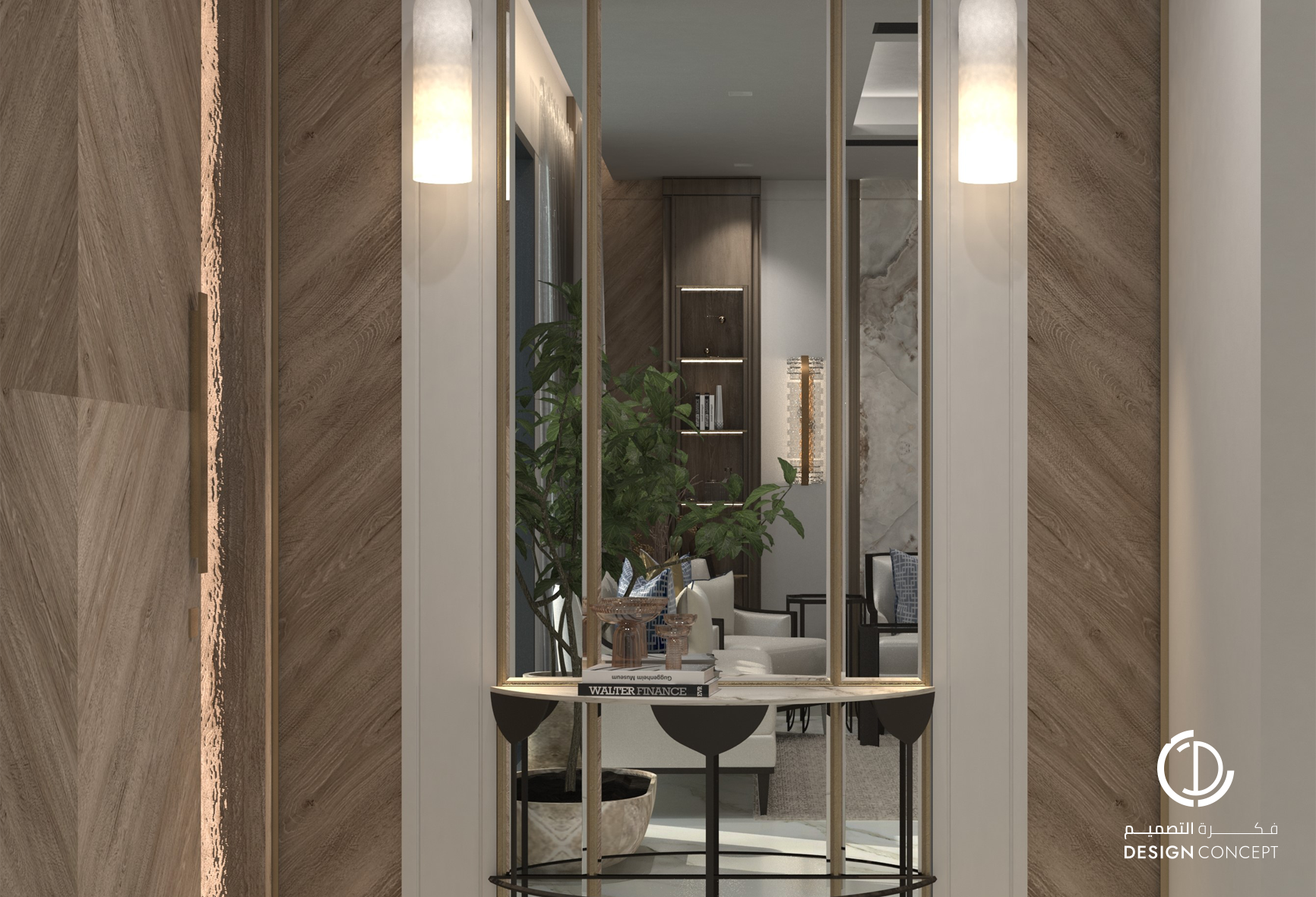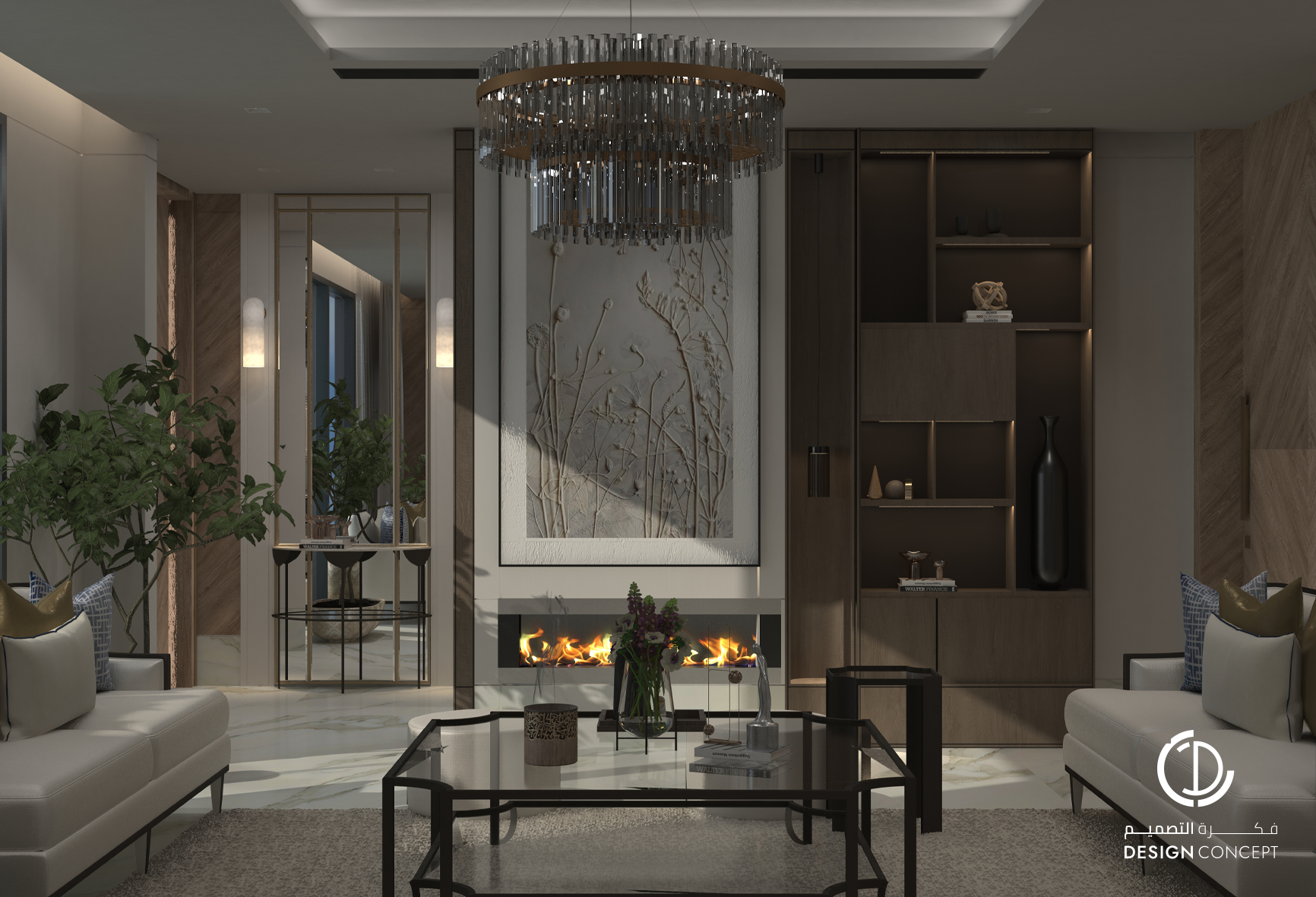 تم تصميم الفيلا على مساحة 130م² بعناية لتوفّر تجربة سكنية تجمع بين الأناقة والراحة. يضم التصميم مجلس بتفاصيل من الرخام والخشب، صالة عائلية دافئة وغرفة نوم رئيسية بلمسات عصرية. تم اعتماد خامات طبيعية وألوان محايدة وإضاءة هادئة في التصميم بشكل عام لخلق توازن بصري يوحي بالاتساع والسكينة.