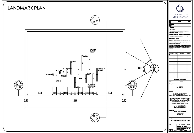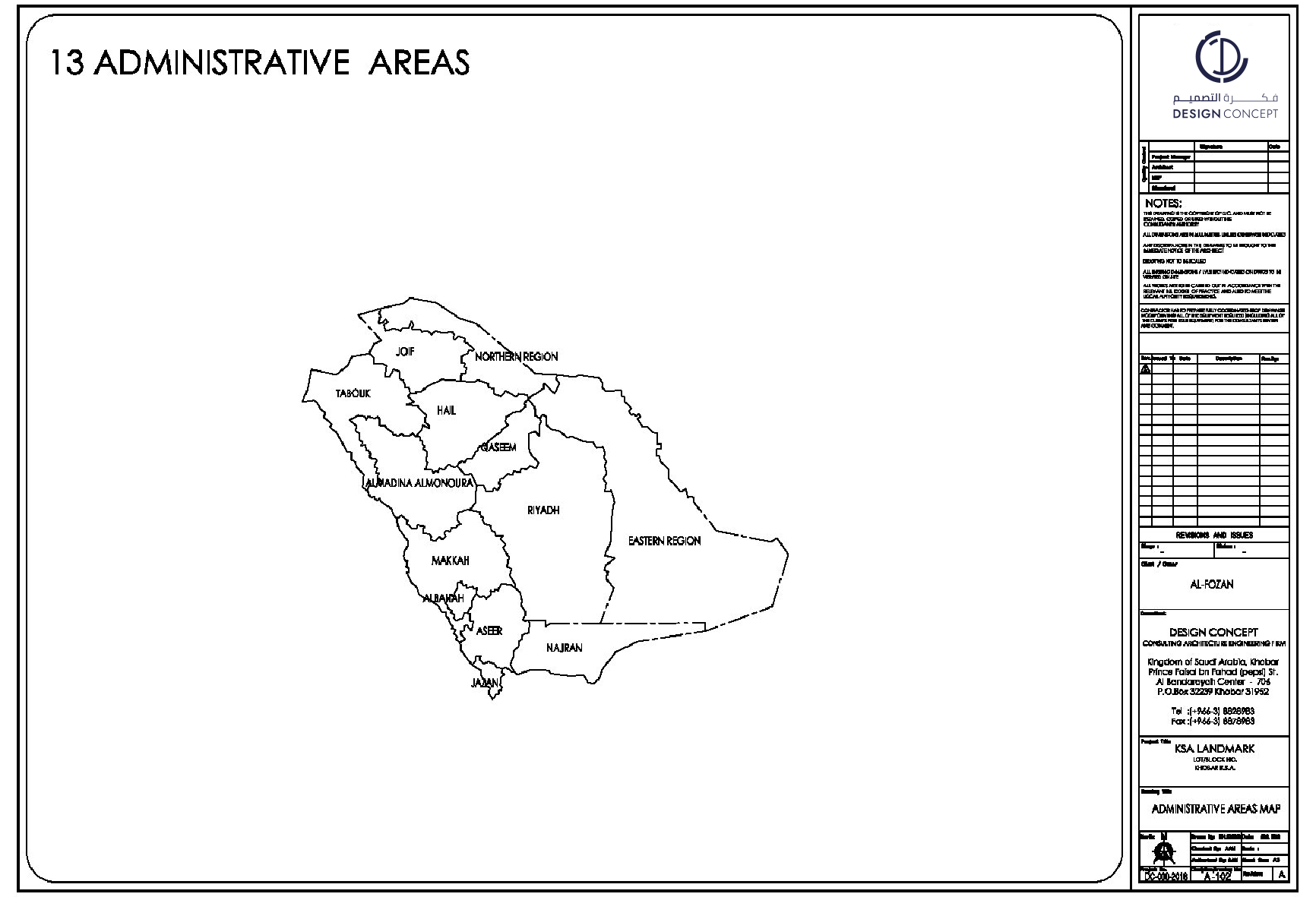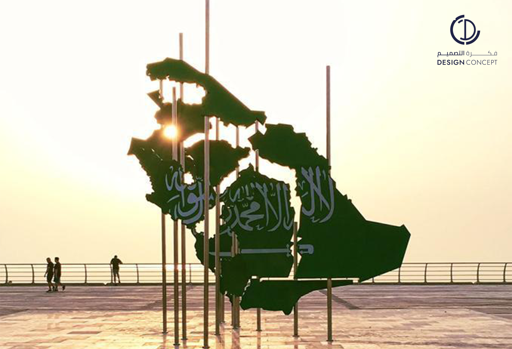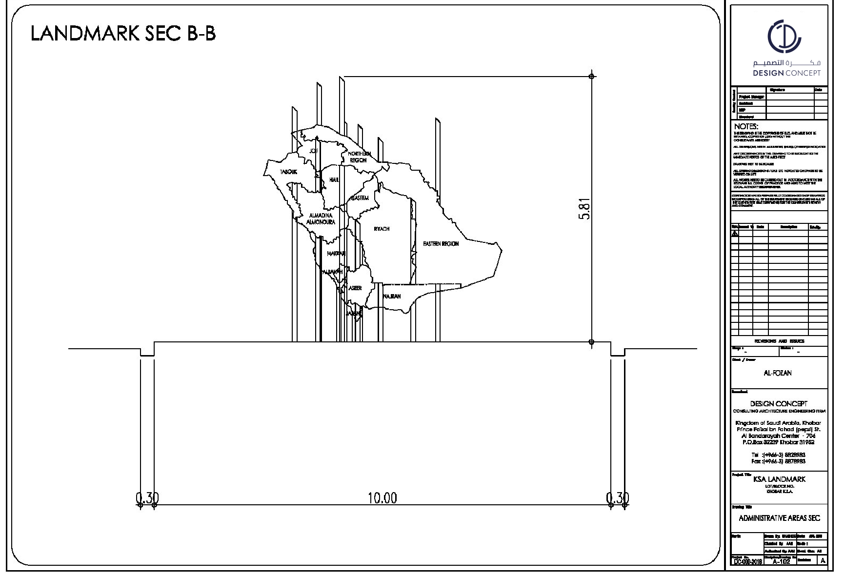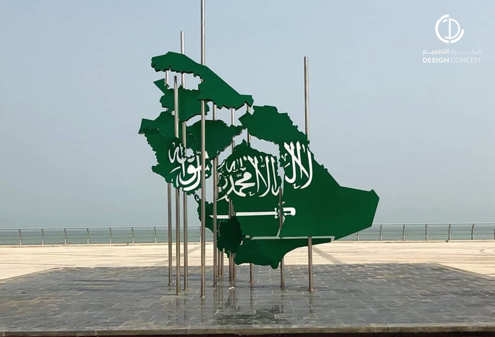 يُمثّل التصميم المناطق الإدارية بالمملكة، نستطيع مشاهدتها مجتمعة لتكون خريطة المملكة في زاوية محددة فقط يتضمن هذا العمل 13 عمود بارتفاع أربع أمتار، كل منطقة على عمود بمعنى أن كل منطقة لديها ثقافتها وحضارتها الخاصة بها، مع ذلك تتفق وتجتمع كل المناطق تحت ظل المملكة العربية السعودية